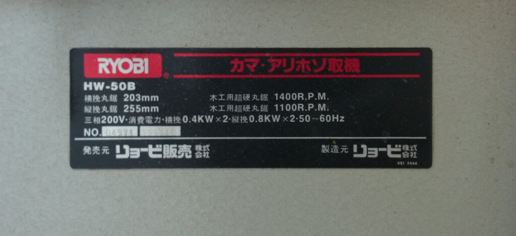 【リョービ】 自動幅ヨセ ホゾ取り機 HWA-25B(三相200V)