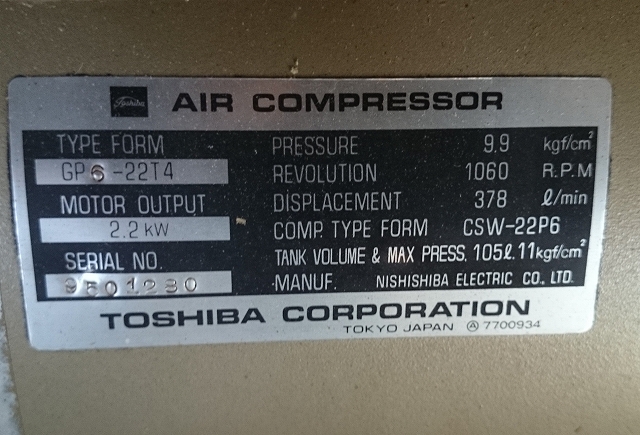 【岩田】コンプレッサ(中古)TLP22EF-10