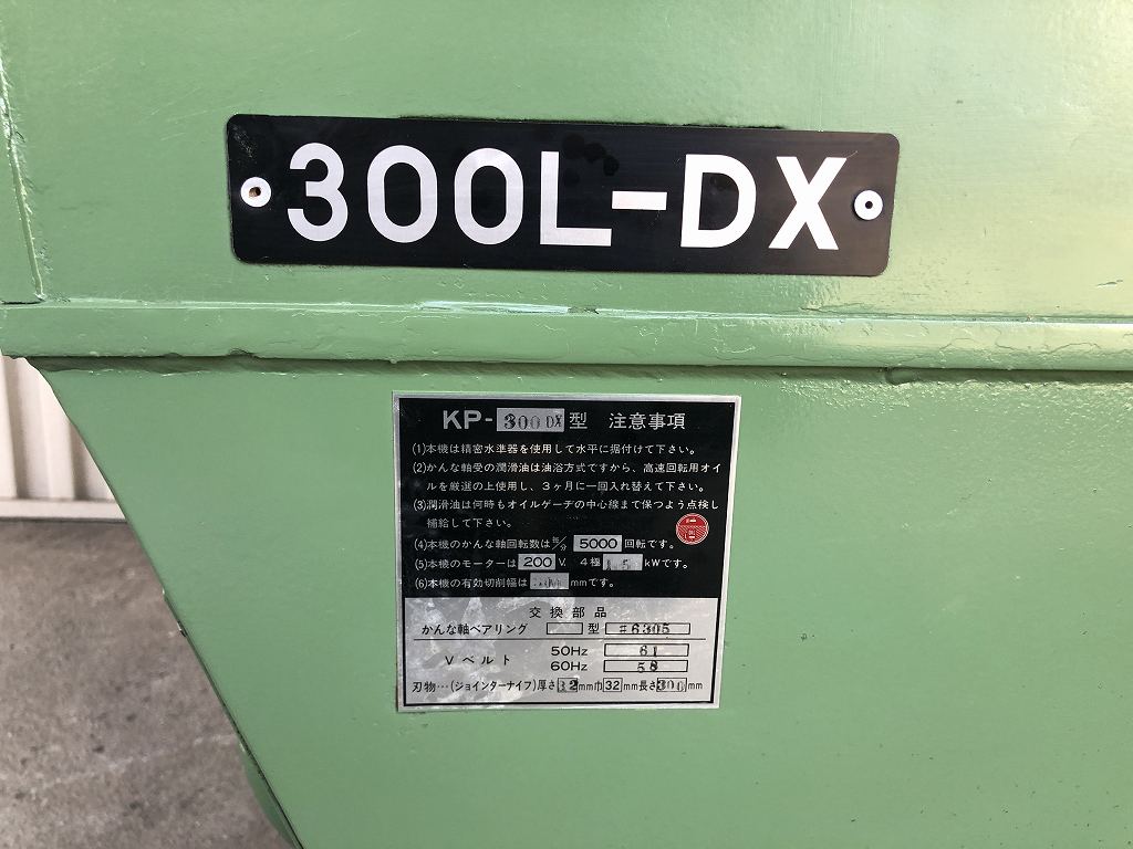 【加工幅】300㎜(4枚刃) 【定盤長さ】L 2100㎜ 【電力】三相200V/1.5Kw 【回転数】毎/分5000回転 【付属品】セッティングゲージ