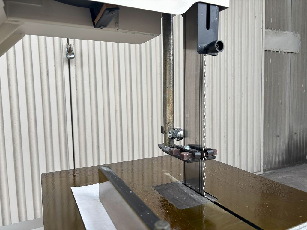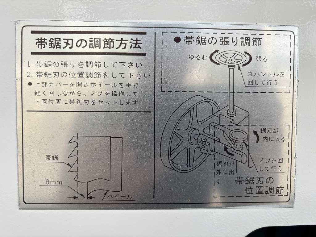 【加工能力】 最大挽割り高さ 320 帯のこ寸法 巾76×周長2,850 【テーブル傾斜角】0~45°【電源】 100V 【消費電力】1、450W