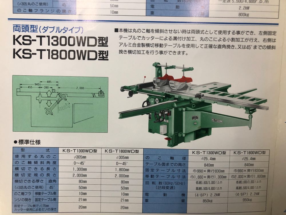 【クワハラ】軸傾斜横切丸のこ盤 KS-T1300TD (整備済)現状渡し
